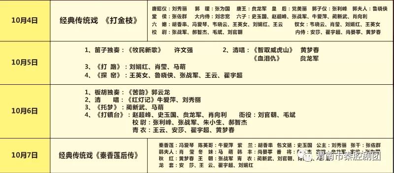 10月1日至10月7日期间,由渭南市文化和旅游局主办,渭南市演艺集团承办,渭南市秦腔剧团演出的渭南黄河文化旅游节系列活动之优秀剧团经典戏曲演出季精彩来袭,众多名家精彩联唱,小戏大戏齐上阵,精彩节目接连登台,欢迎广大市民前来大剧院观看演出!