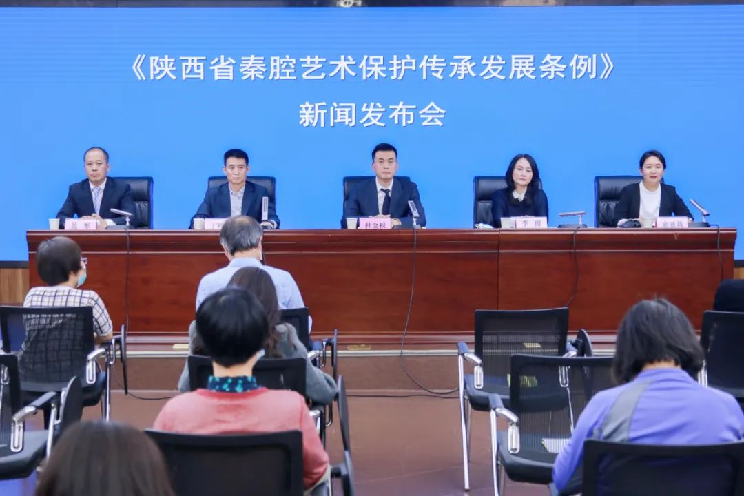 5月11日,省文化和旅游厅召开新闻发布会,厅党组成员、副厅长杜金根就《陕西省秦腔艺术保护传承发展条例》(以下简称“《条例》”)的制定与贯彻落实情况进行介绍,参与《条例》立法工作的著名秦腔表演艺术家李梅、惠敏莉与艺术评论家丁科民回答媒体提问。