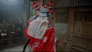 记得黄梅戏《女驸马》《状元府》一幕中,冯素珍中了状元之后,在状元府的出场就是使用了帽翅功。帽翅功与翎子功类似,都是头上的功夫。只不过两者一长一短,帽翅功也不实用手做动作,是更纯粹的头颈动作。一般是以颈部为轴心,晃动头颈,带动头上的帽翅或上下、或左右摆动,复杂一写的有前后转圈,有单个帽翅摆动,有时两个帽翅同时摆动。